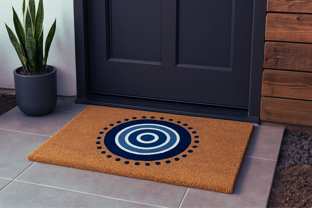 This premium doormat is made of natural coir, a durable, dense fiber that scrapes shoes clean.